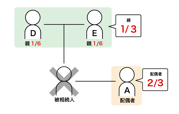 | 配偶者と直系尊属(親など) | 2/3 | 直系尊属が1/3(親が両方いる場合は等分割) |