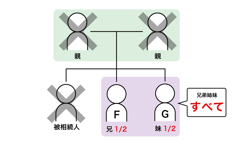 配偶者なし、血族相続人(兄弟姉妹2人)の場合