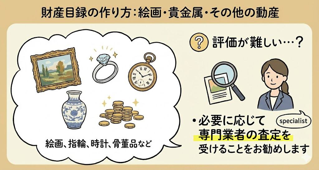 この記事では、財産目録の基本的な考え方から、預金・不動産・有価証券・自動車・貴金属・債務まで、財産の種類ごとに調査・評価・記載の方法を分かりやすく解説します。
