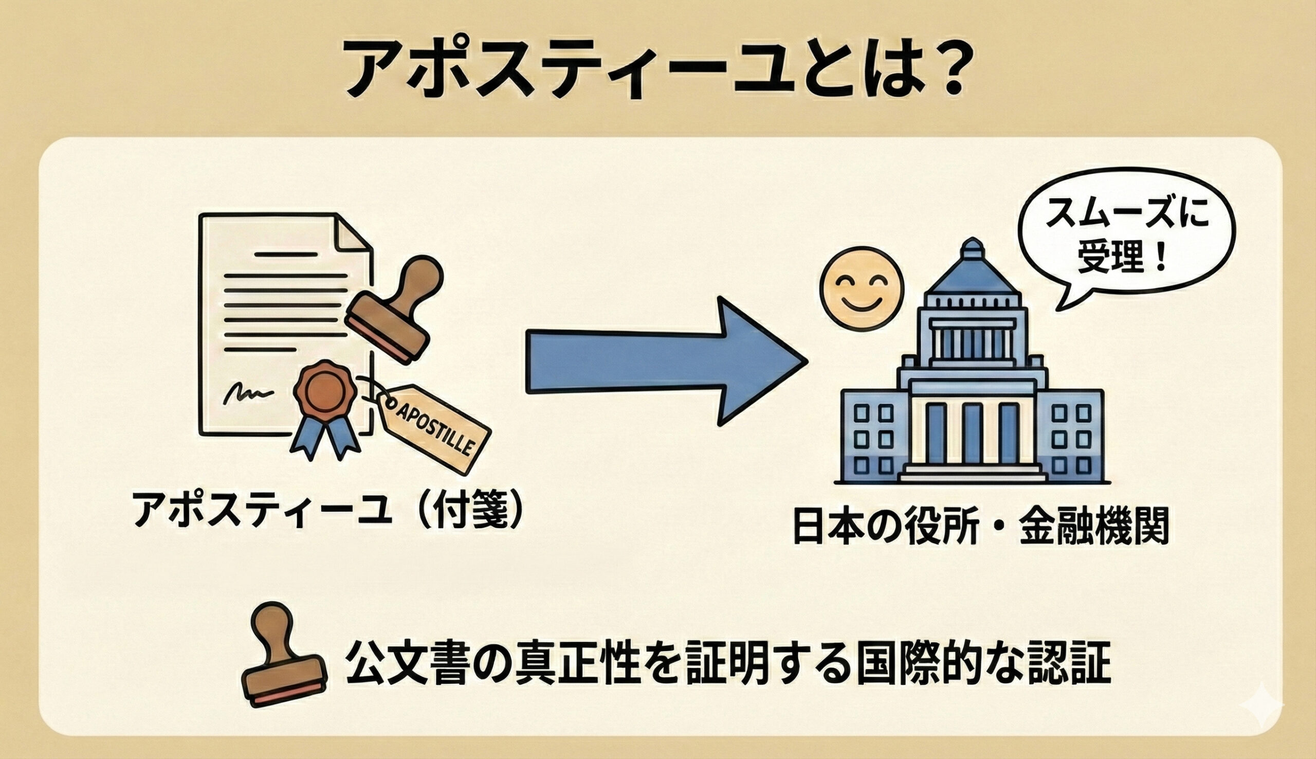 日本での相続手続きでアメリカの公的証明書を提出する場合、提出先によっては「アポスティーユ(Apostille)」という認証を求められることがあります。