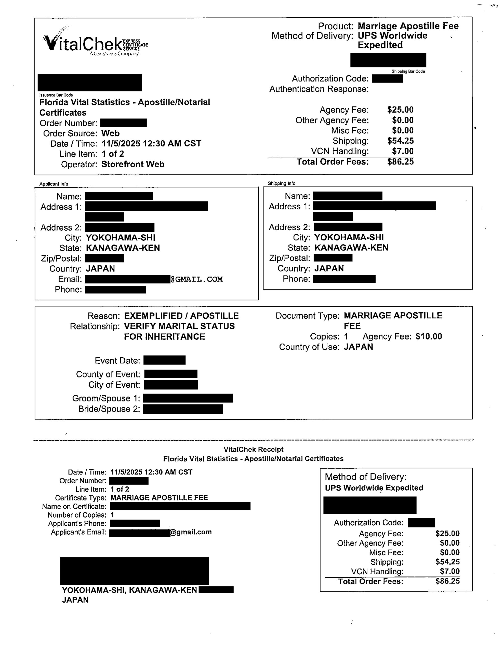 - VitalChekは日本からでも利用でき、死亡・結婚・離婚証明書をオンラインで申請可能。